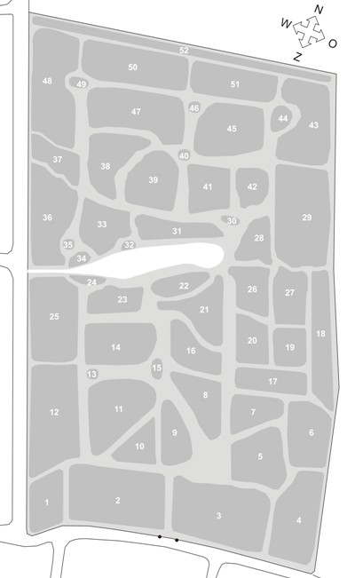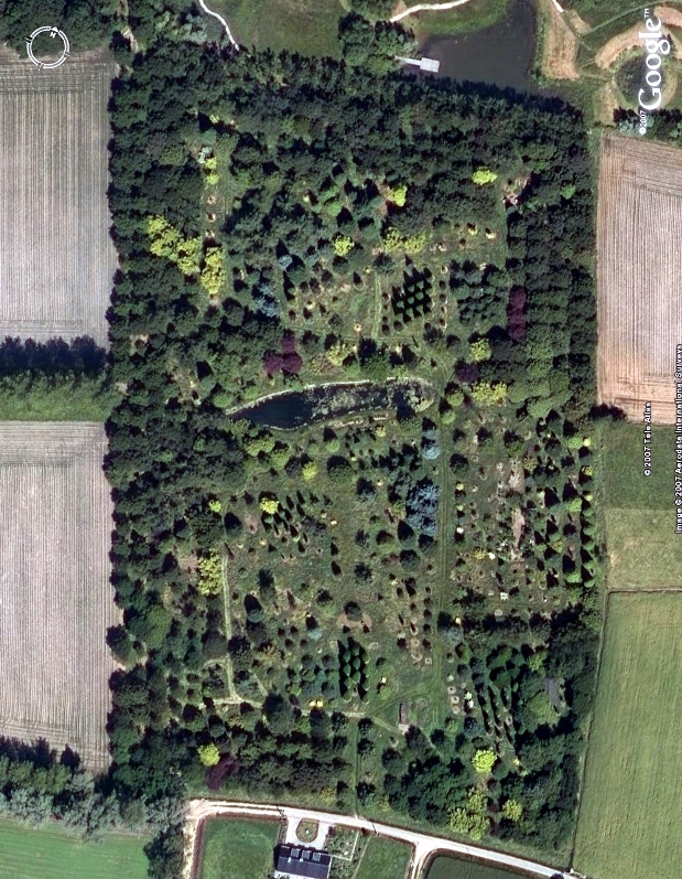 Het arboretum werd ingedeeld in verschillende locaties (zie foto rechts). Samen met een identificatienummer dat aan iedere boom en struik werd toegekend, laat dit een volledige documentatie toe.